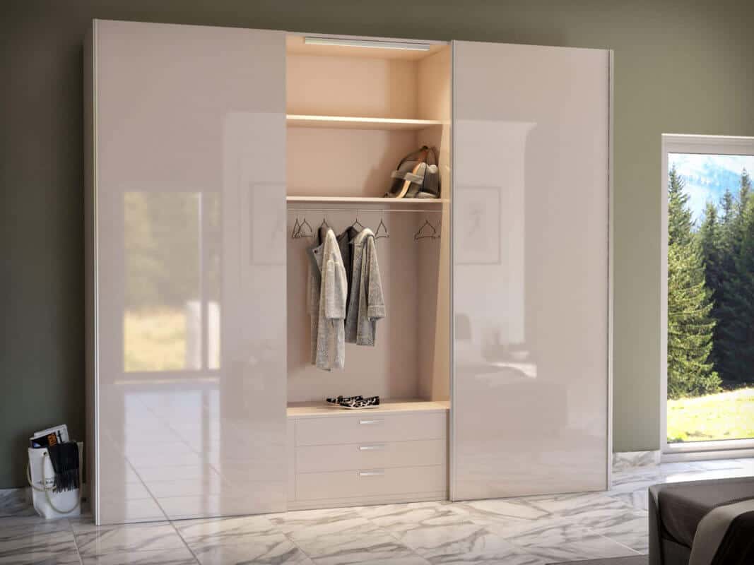 Οι συρόμενες πόρτες εξασφαλίζουν αθόρυβη και σταθερή κύλιση χάρη στον ενισχυμένο μηχανισμό βαρέου τύπου, προσφέροντας μέγιστη εργονομία και εξοικονόμηση χώρου.