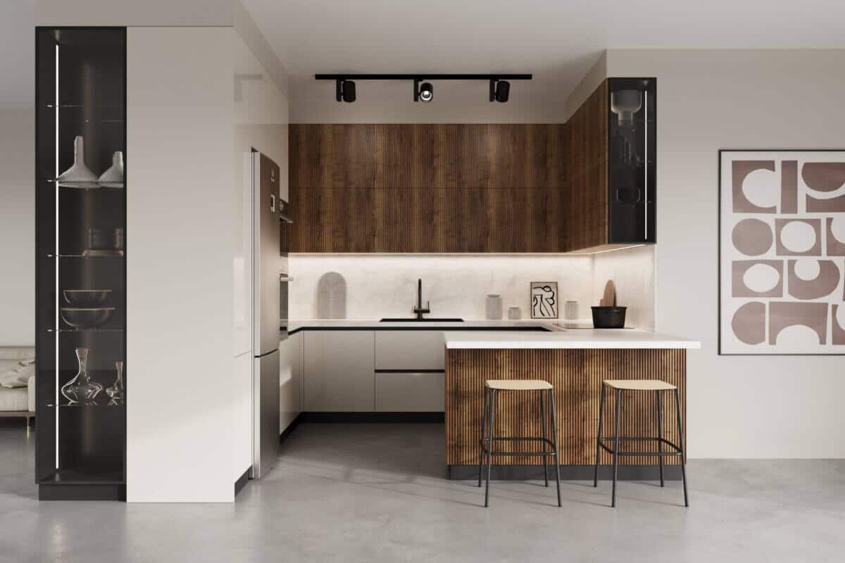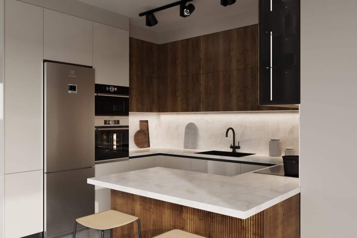 Σύγχρονη κουζίνα με ανάγλυφα ξύλινα στοιχεία – Έργο στη Θέρμη Θεσσαλονίκης