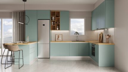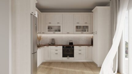 Η κουζίνα διαθέτει soft-close μηχανισμούς, φωτισμό LED και ανθεκτικά υλικά που εγγυώνται μακροχρόνια αντοχή και άψογο φινίρισμα.