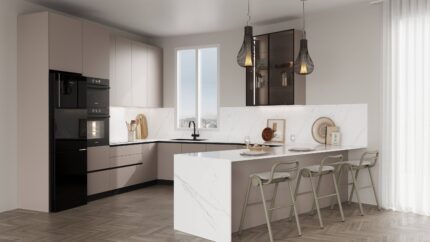 Η Adesign Koios ολοκλήρωσε ένα ακόμη έργο στο Ωραιόκαστρο Θεσσαλονίκης, δημιουργώντας μια μοντέρνα κουζίνα υψηλής αισθητικής που συνδυάζει λειτουργικότητα και κομψότητα.