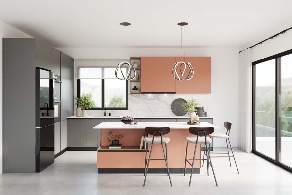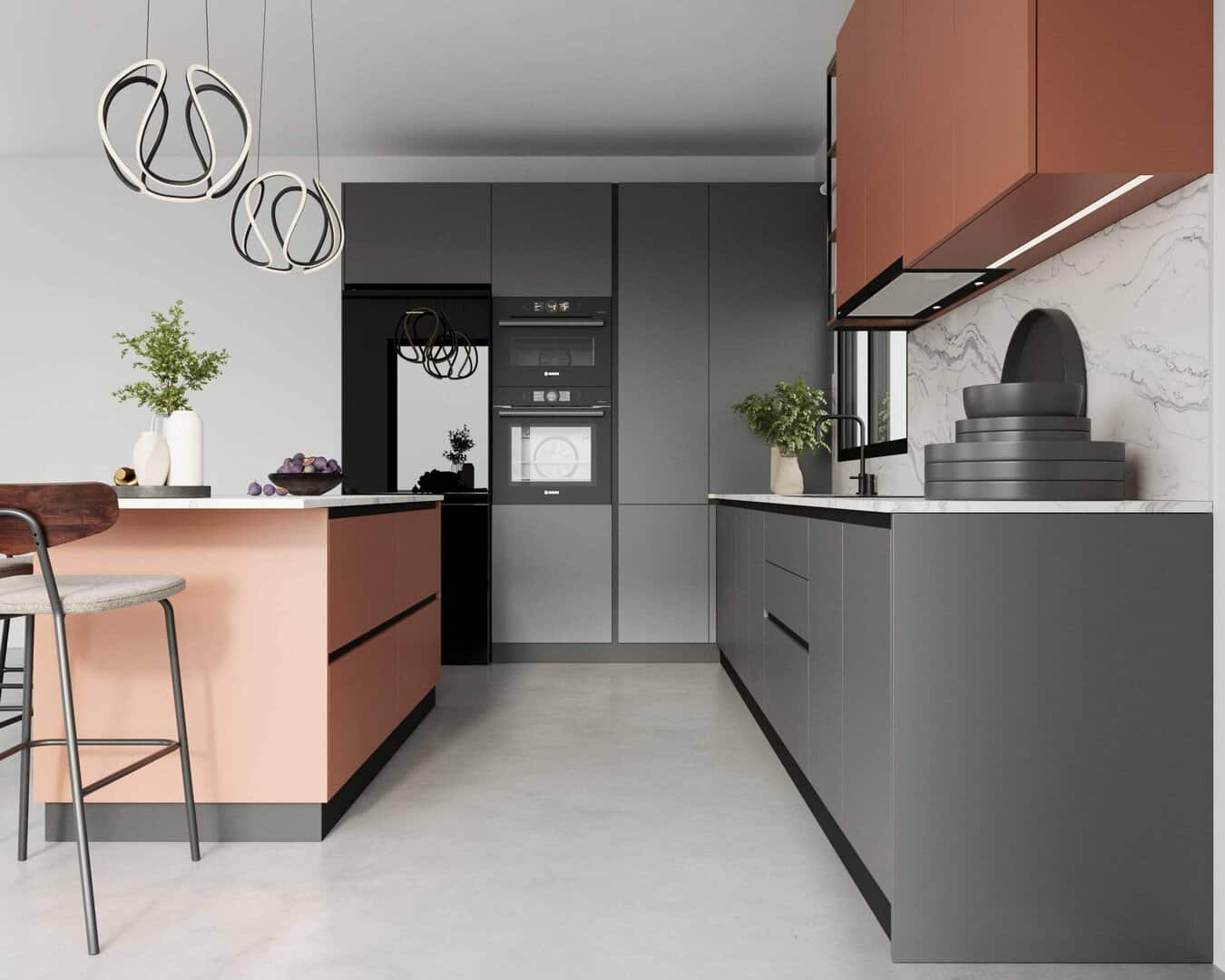 Η κουζίνα CORALE φέρνει φρεσκάδα και χαρακτήρα στον χώρο σας, χάρη στη μοντέρνα αντίθεση μεταξύ των ματ γκρι επιφανειών και των κοραλλί αποχρώσεων. Η εντυπωσιακή νησίδα με λευκό πάγκο και ανοιχτό ράφι συνδυάζει design με πρακτικότητα, ενώ οι καθαρές γραμμές και η μίνιμαλ προσέγγιση αποπνέουν κομψότητα. Η CORALE είναι ιδανική για όσους επιλέγουν κάτι διαφορετικό, ζωντανό και υψηλής αισθητικής για την καθημερινότητά τους.